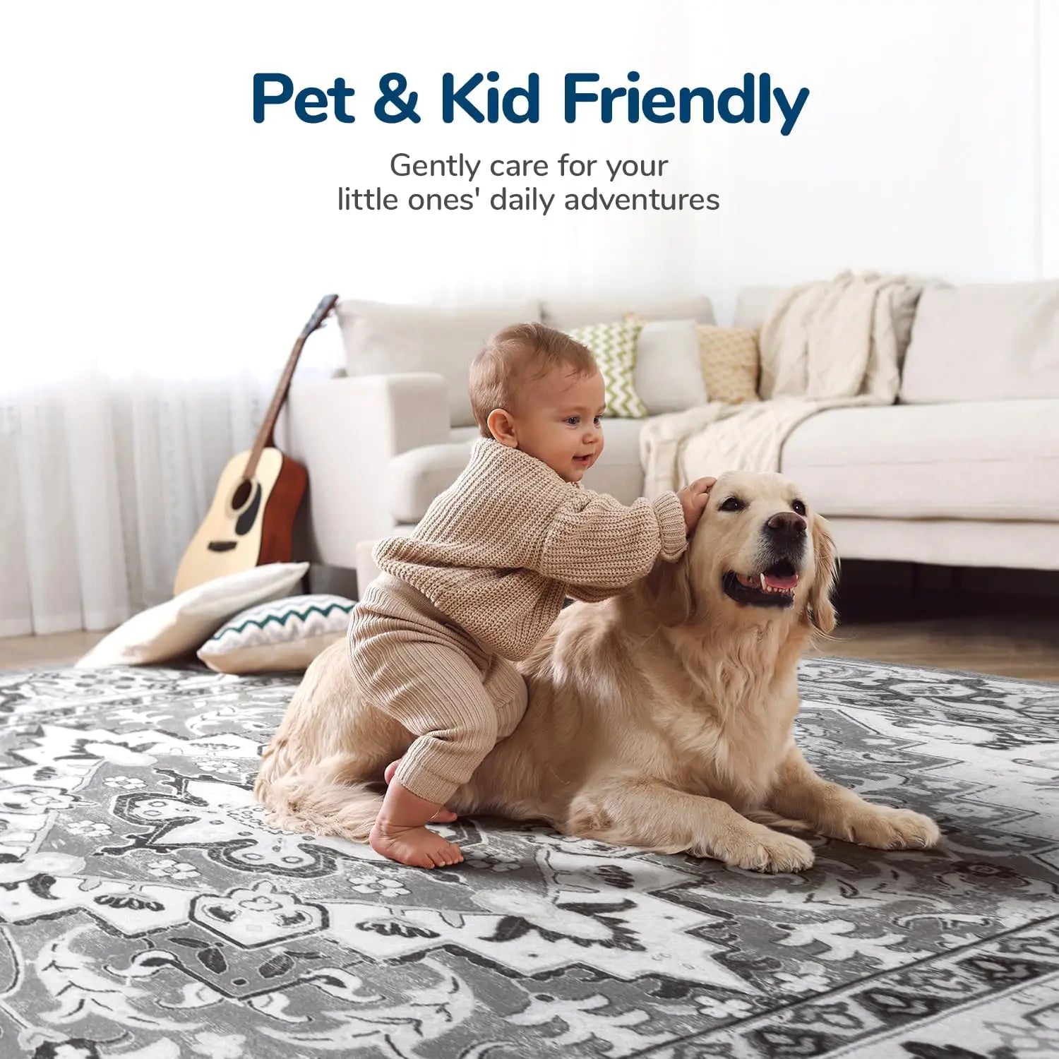 - Versatile, durable style: The vintage floral medallion in grey and white complements living rooms, bedrooms, entryways, or home offices, and it resists pet hair buildup for easier upkeep.
