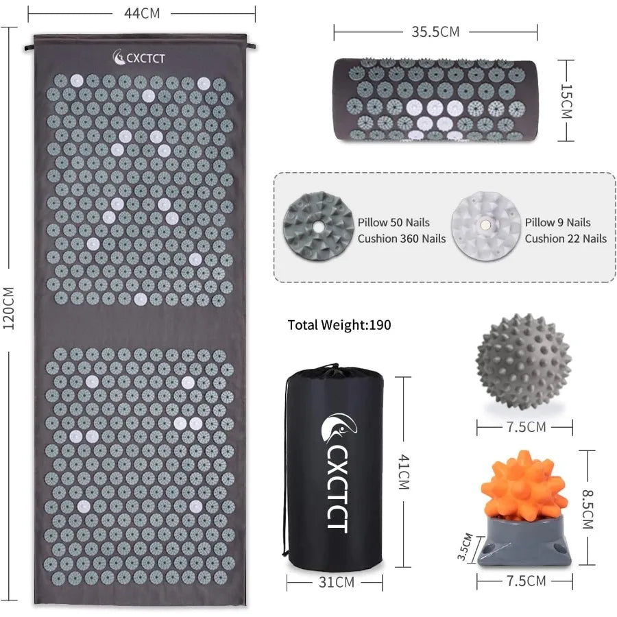 Extra Long Yoga Acupressure Mat Set for Back and Neck Pain Relief: Large Magnetic Acupressure Body Mat with Pillow Ideal for Me