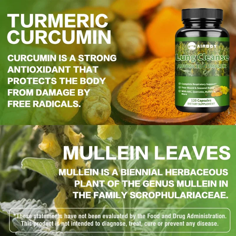 - Keeps airways open by combining lung-cleansing botanicals and antioxidant curcumin, helping you breathe easier during year-round irritants like pollen and dust.
