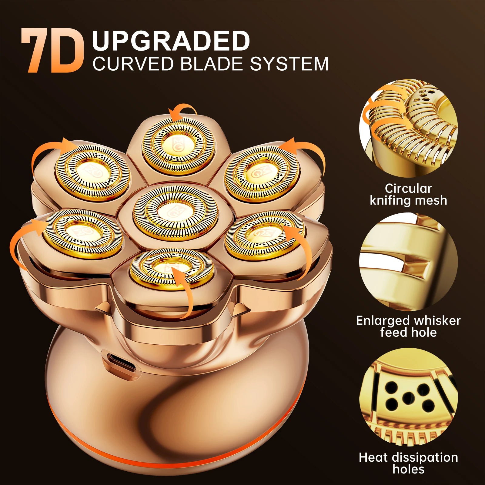 - 7D floating blade system follows every contour for an irritation-free shave on scalp and face, with 0.10mm ultra-close precision, and delivers about 3.5x more coverage than standard dual-blade razors.