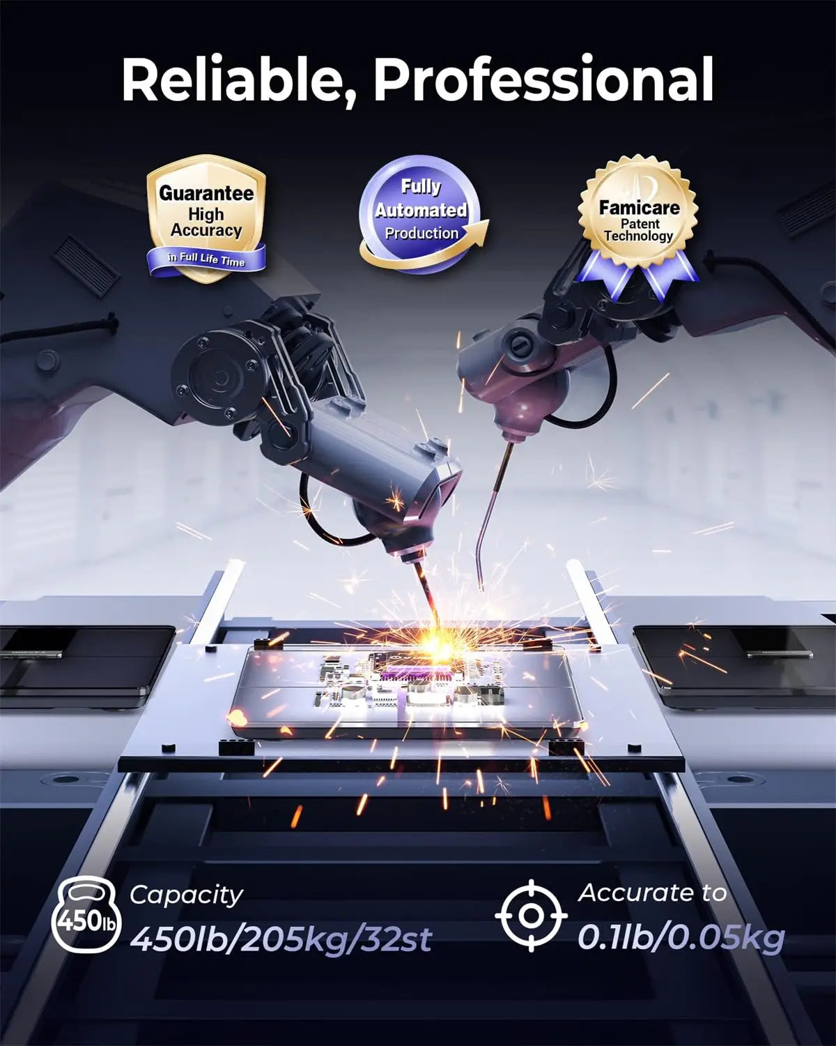 - You enjoy a durable tempered-glass platform (11.8x11.8 in) with anti-slip pads, a 450 lb capacity, and precision to 0.1 lb thanks to upgraded ITO sensors.